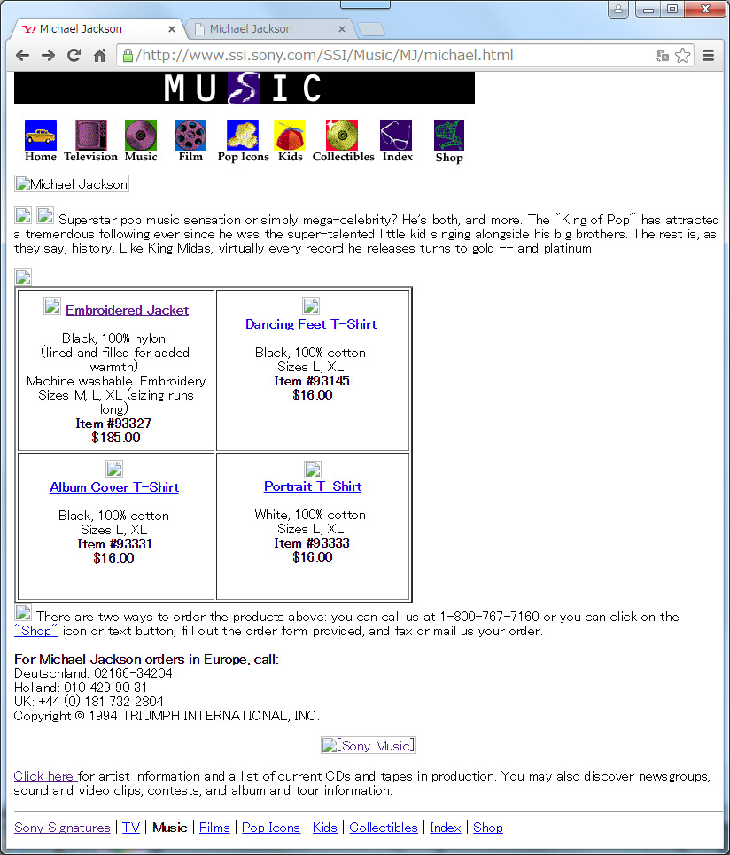 マイケルのサイト内ページじゃないし、見苦しいから再現ページにはせずスルーすっか