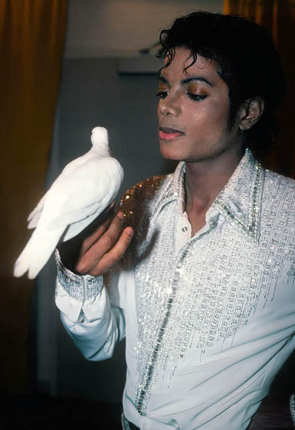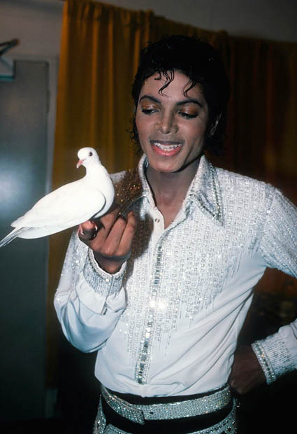 '84年頃の普段着なマイケルが椅子にどっかり座って