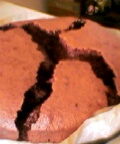 ド派手に割れた、毎度おなじみのガトーショコラ。