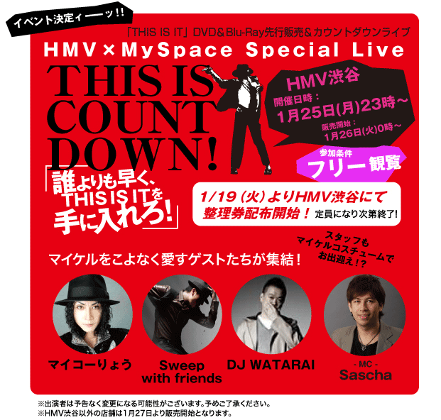 MJ関連商品購入時、MJコスプレの方・MJグッズ持参の方・イニシャルMJの方