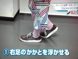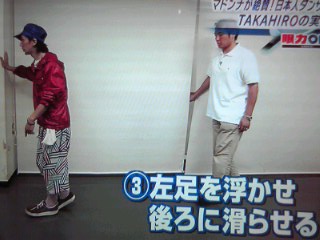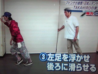 ちょうどレポーター氏に 『ムーンウォークの特訓』 をつけようとしてるとこ
