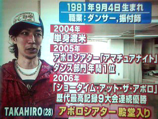 ザッピング中、TAKAHIRO氏をレポートしてる某番組のコーナーにぶつかった