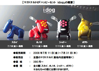マックのハッピーセット(390円~)に idogが付いてくるとな。