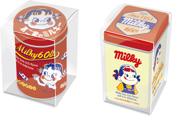 レトロデザインな缶入りミルキー・丸缶&角缶の2種類を発売。