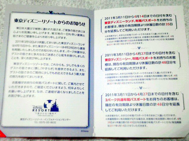 オリエンタルランドから、地味ィ~~なハガキが届きのの。