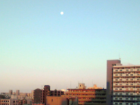 月がまだ結構高い位置でわりとクッキリ、存在誇示。