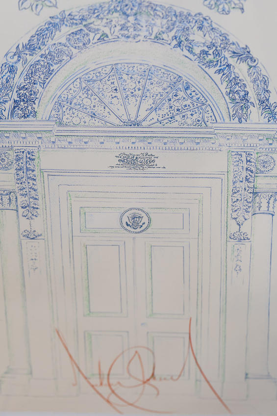 よく見ると、本物のドアにはない大統領の紋章と
