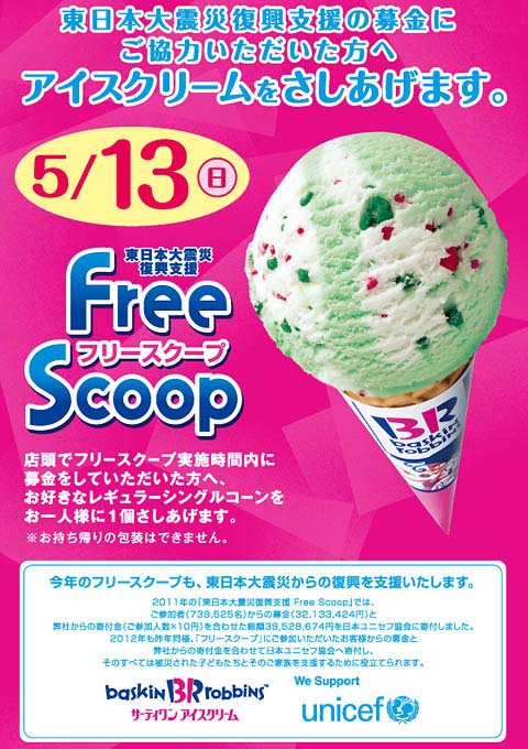 ここ毎年やってるユニセフとの支援イベント 『フリースクープ』 を、