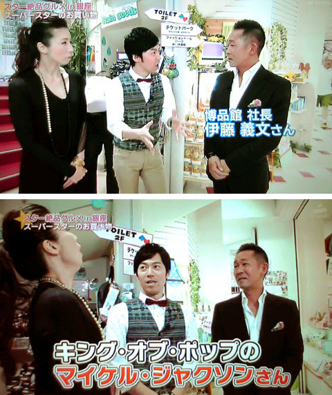 東MAX: 「いろんなスターがオモチャを買いに来たりとかすると思うんですけど、どなたが…?」伊藤社長: 「キング・オブ・ポップの、マイケル・ジャクソンさん。」東MAX: 「マイケル・ジャクソンが