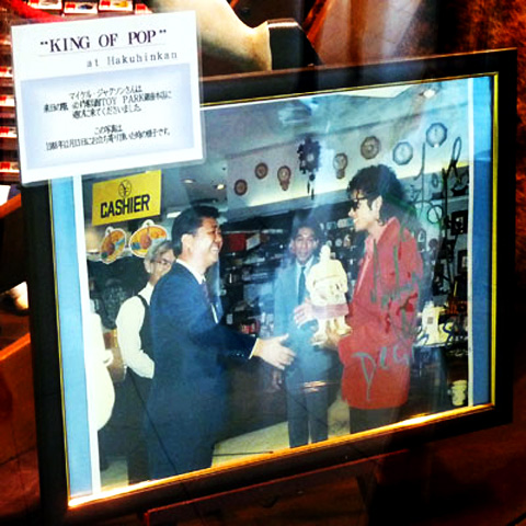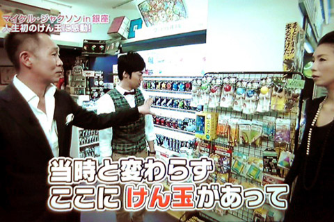 東MAX: 「マイケルとかがお店に来るってなると、直接連絡あるわけではないですよね?」伊藤社長: 「事前に、たとえばコンサートのスタッフの方なんかから連絡を戴いて、パニックになるので閉店後に貸し切られて。」伊藤社長: 「当時と変わらずここにけん玉があって。 で、 "コレは何か?" っていう風に通訳さんを通して訊かれた時に 僕、ヤッてみせたんですよ」ひとみさん: 「へぇ~~」東MAX: 「ちょっとヤッてもらっていいですかw」そら言われるわなww