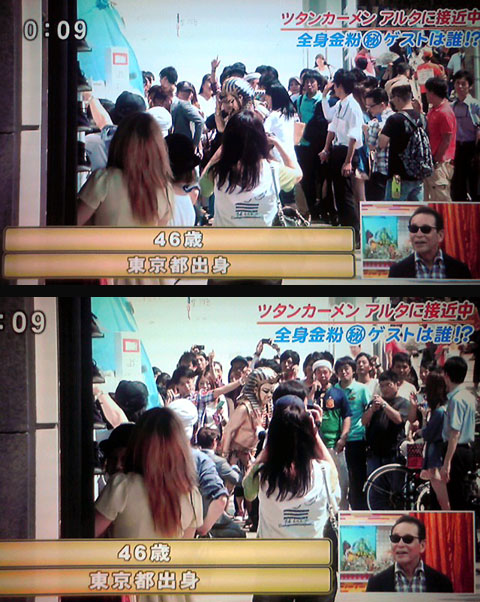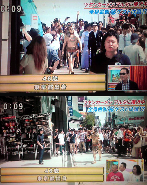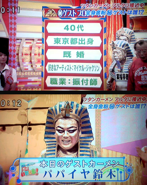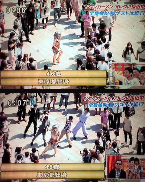 ツタンカーメンに扮した全身金色のゲストがアルタへ走ってくる様子を見て ソレが誰なのか当てる