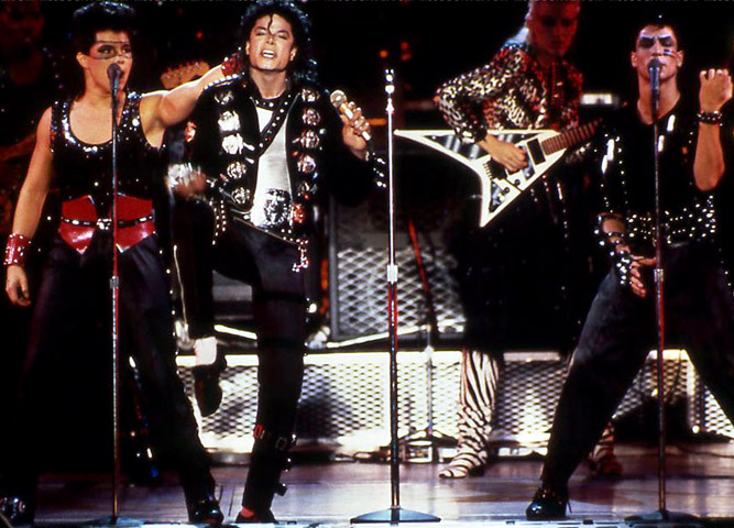 "Bad" で、マイケルはタオルで靴を拭いて滑り止め。