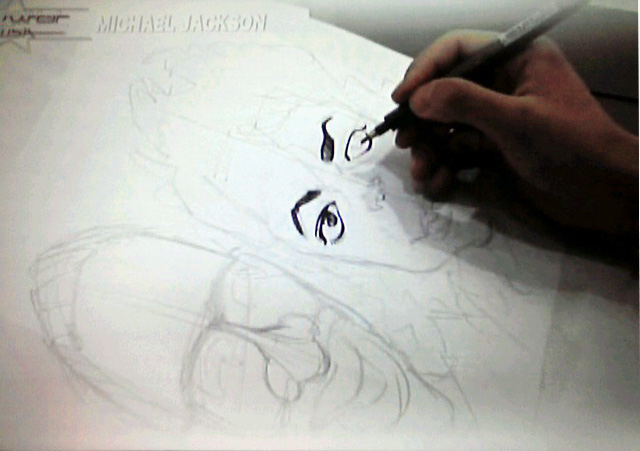 マイケル&スティービーの似顔絵を描いていくさまをノーカット風味で早送り再生、というもの。