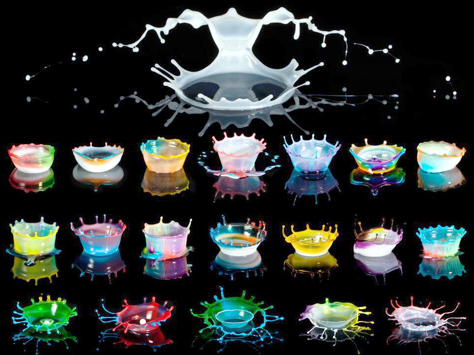 なんとなく涼しげな、カラフルなミルク・クラウン。