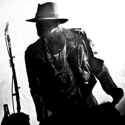 <マイケルっぽい形のフェドーラ帽&ライダースジャケット姿のシルエット>