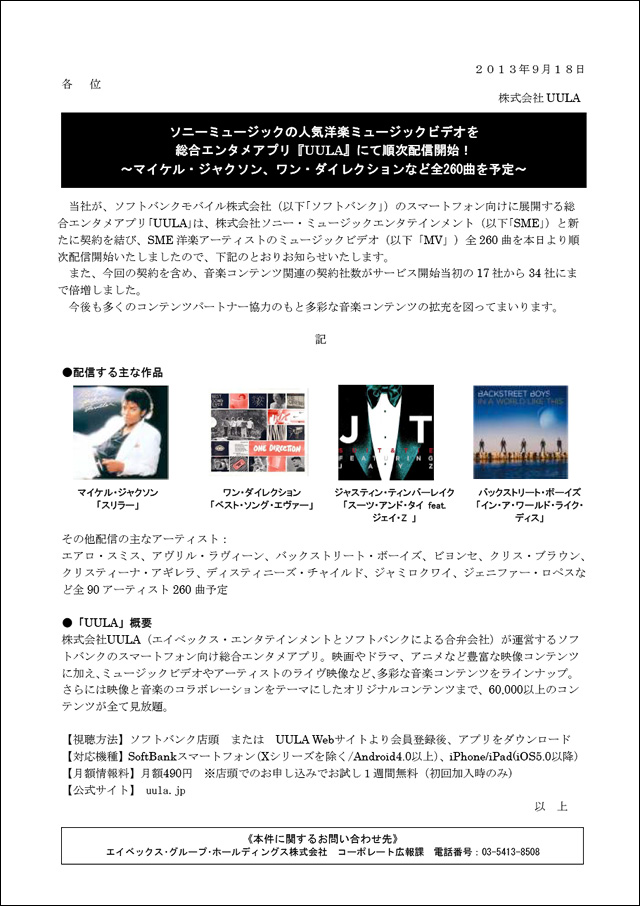 【ドコモ&ソフトバンク、SONY洋楽260曲のビデオ順次配信】