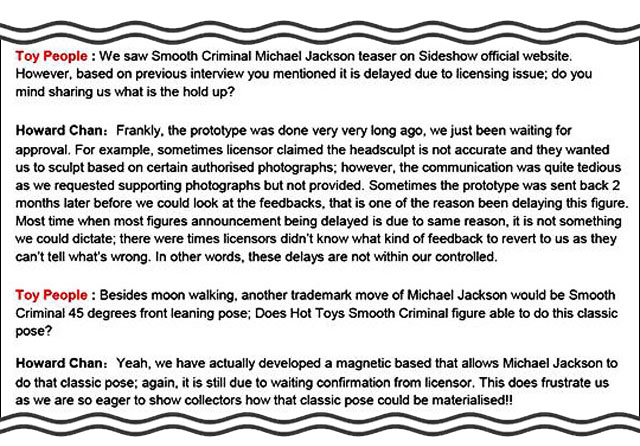 Hot Toys社 ホワード・チャンCEOのインタビューから 一部抜粋。