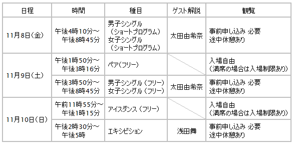 NHKでは、国立競技場代々木第一体育館で行われるNHK杯フィギュアのもようをスーパーハイビジョンで撮影し、あたかもリンクサイドで観戦しているかのような臨場感をお楽しみいただくライブビューイングを実施。
