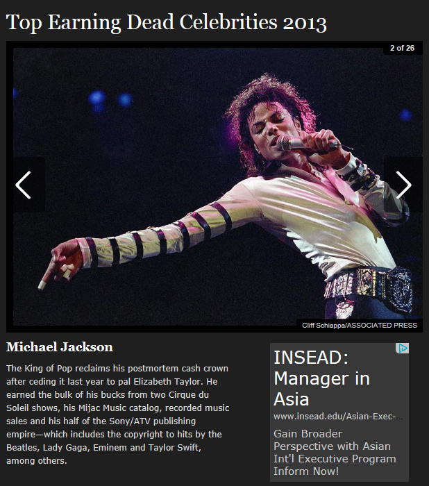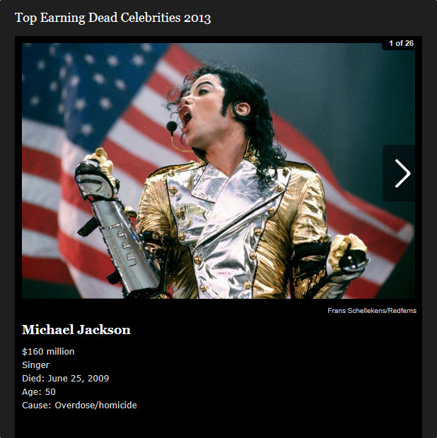1位 | 16,000万ドル | マイケル・ジャクソン |