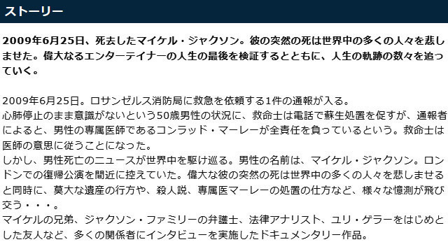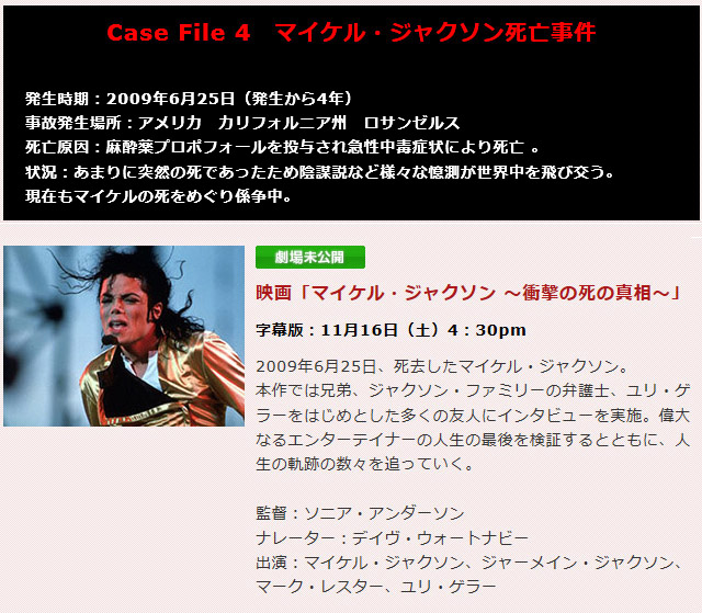 16:30~ 映画 『マイケル・ジャクソン ~衝撃の死の真相~』