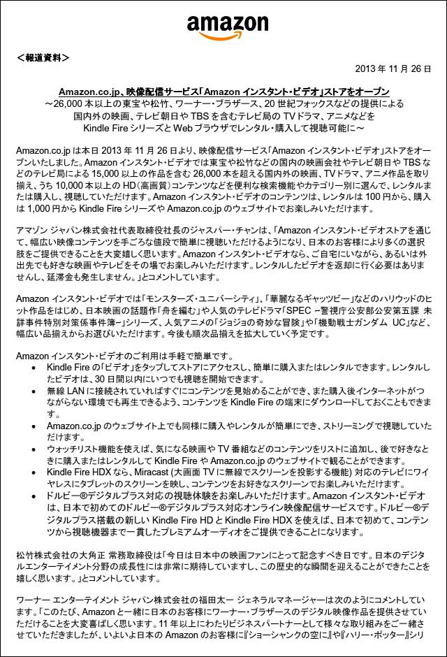 【Amazonインスタント・ビデオ】ストアをオープン。