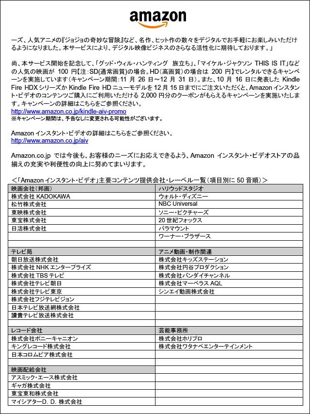 Kindle Fireシリーズで,もしくはアマゾンHP上からPCで視聴できる。