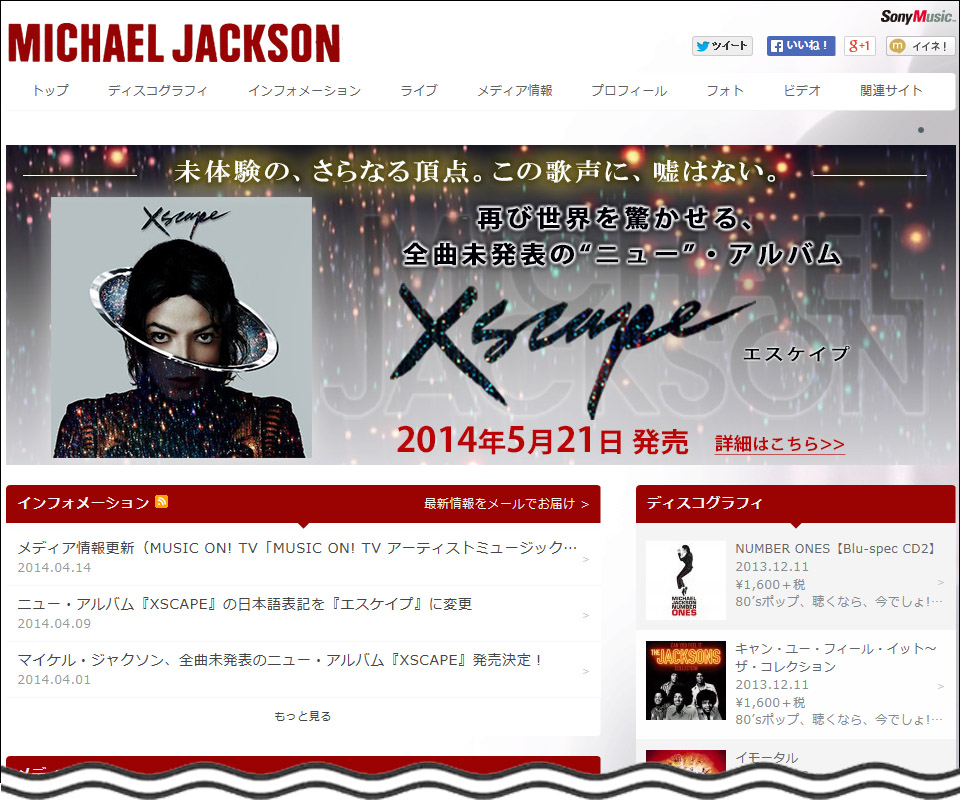マイケル公式サイトのTOPページ