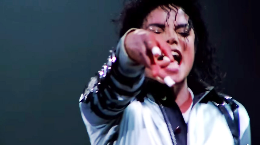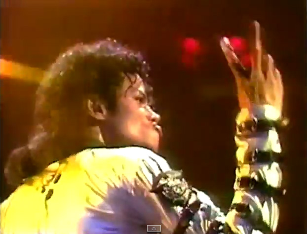 ツアーでアナパーを演奏しだした初期の頃の映像だと、その音ハメ直前に、マイケルがそれとなくバンドに音ハメの回数を指示しているようなアクションがあるのです。 音ハメ2発の直前には2本指、音ハメ3発の直前には3本という風にです。