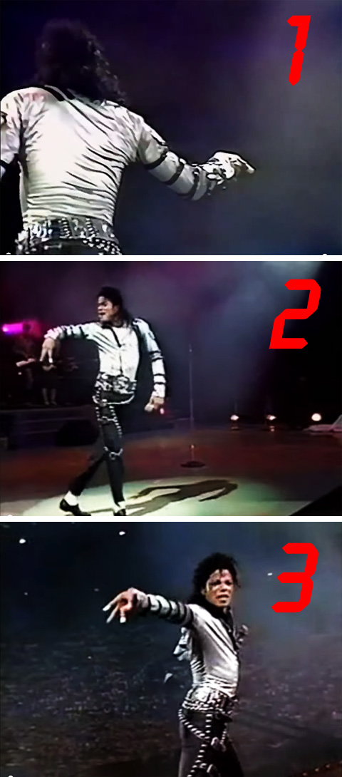 - なぜこの時 3本指を突き出したのか? -この瞬間 それがベストだと感じただけの事だろうけど、ソレの連鎖がMJクオリティー。動き自体よりも その感性に近づく事に力点を置かない限りは、単なるモノマネに終わる。根本的な考え方は このとおりのまま微動だにしませんが、
