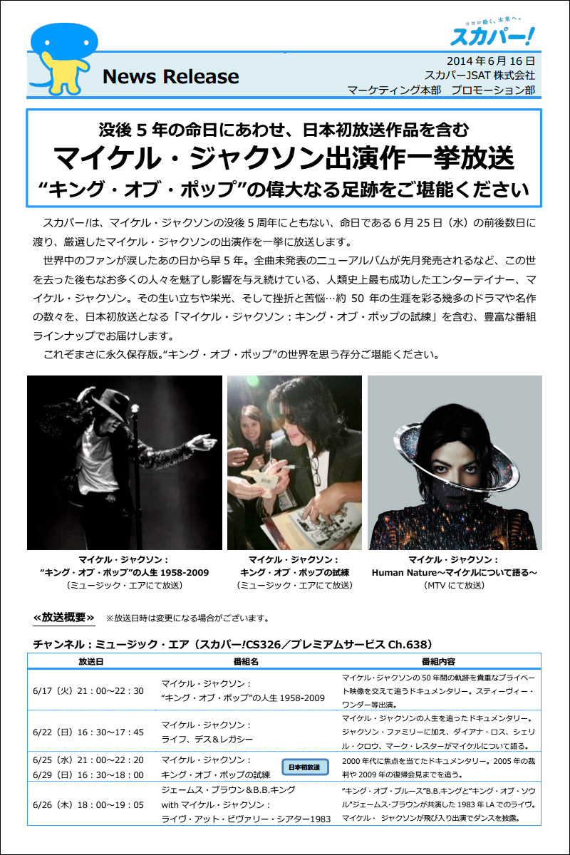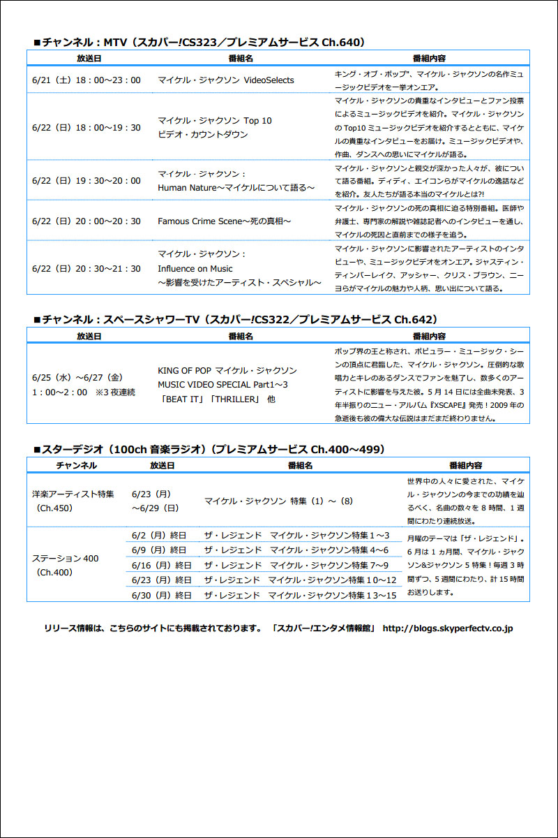 スカパー!、マイケル出演作一挙放送