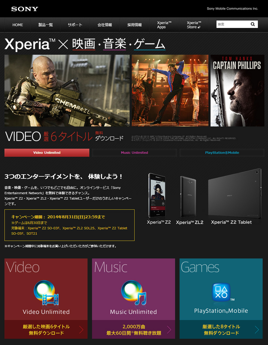 キャンペーン 【Xperia × 映画 ・音楽・ゲーム】 を
