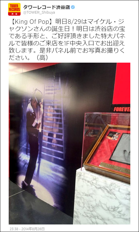 渋谷のタワーレコードでは、1F中央入口に 手形&特大パネルを設置。