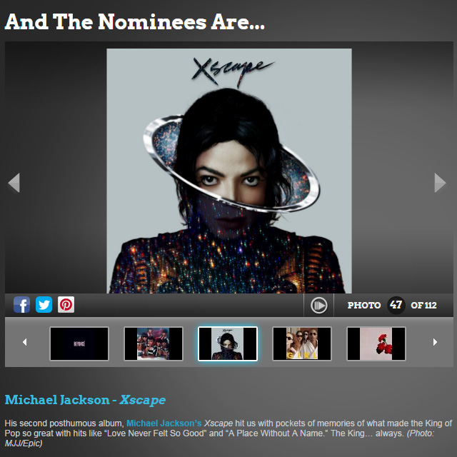 マイケルが3部門にノミネート