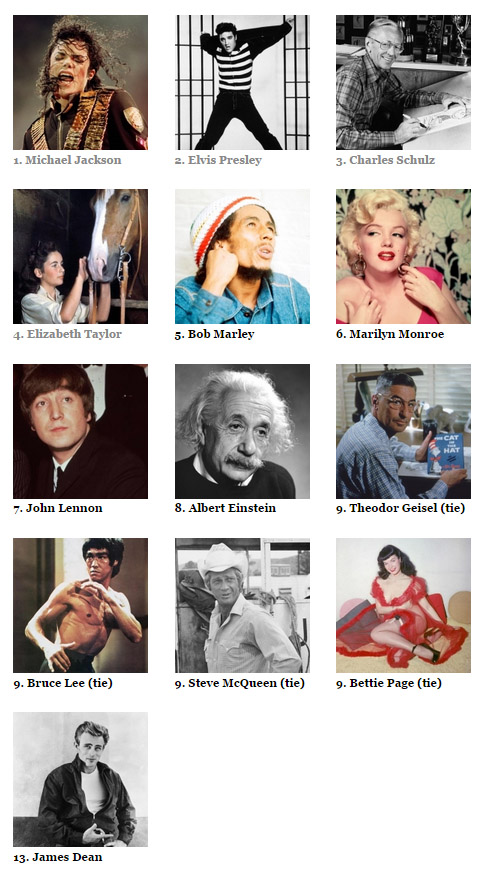 | 2位 | 5,500万ドル | エルヴィス・プレスリー |
