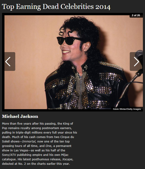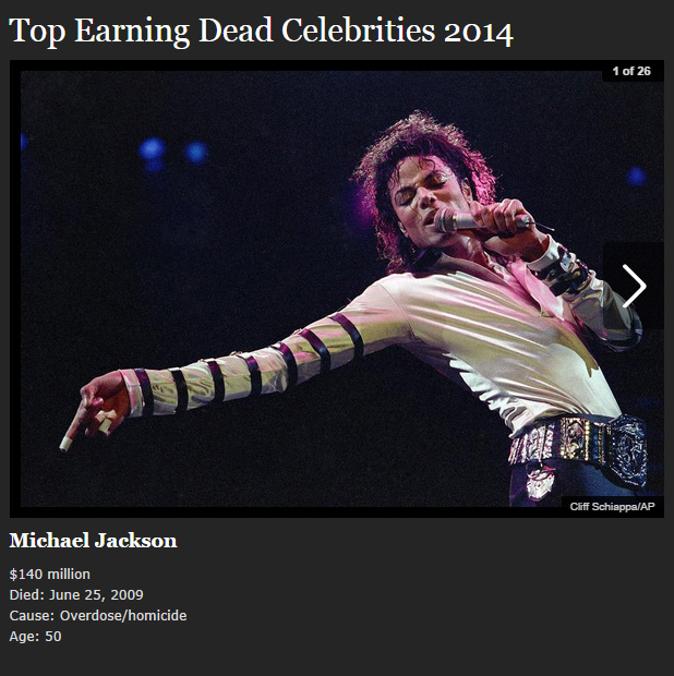 1位 | 14,000万ドル | マイケル・ジャクソン |