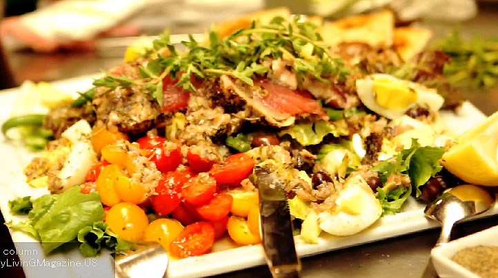 "Seared Ahi Tuna Salad Nicoise with Shallot-Herb Vinaigrette"。