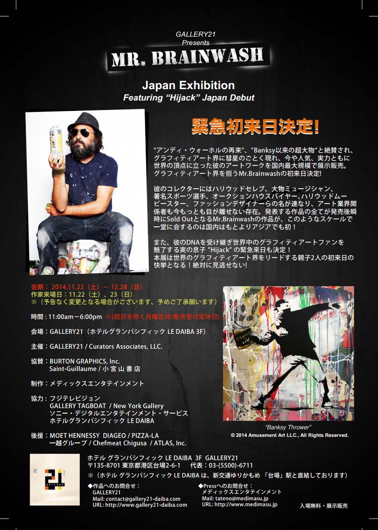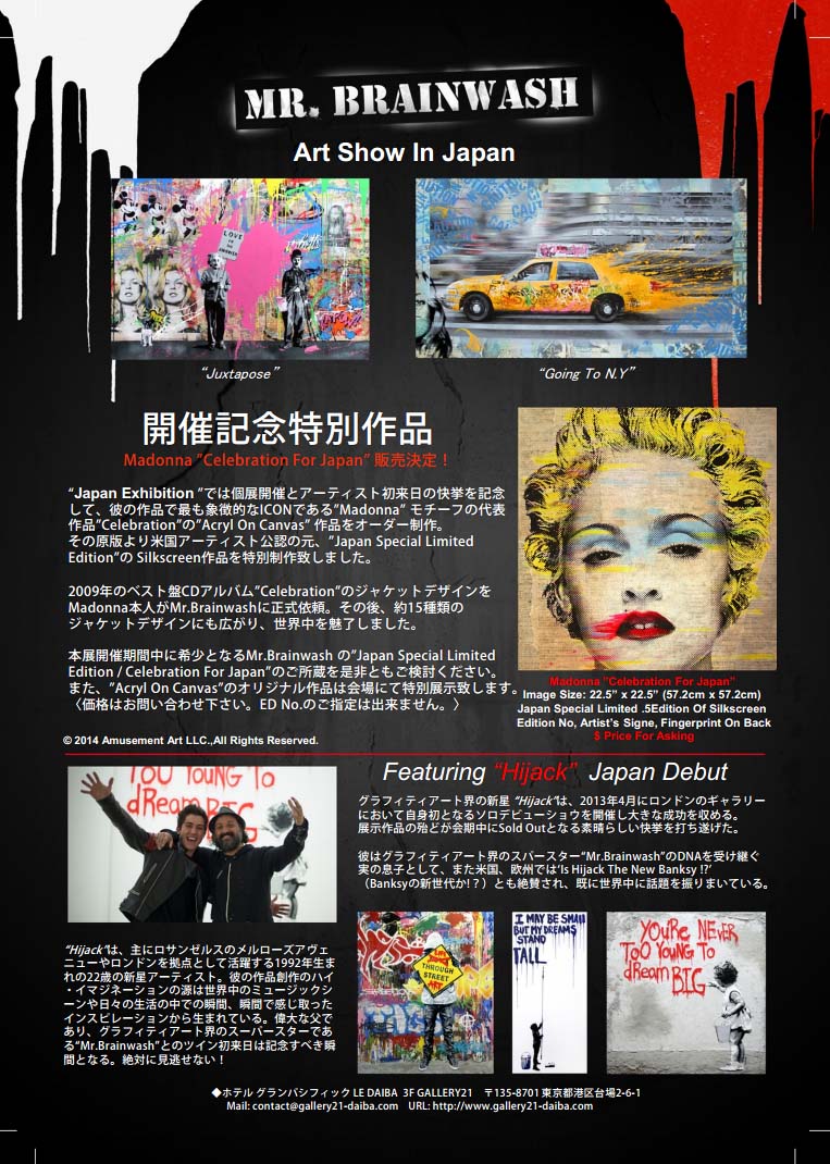 【Mr.Brainwash Japan Exhibition Featuring "Hijack" Japan Debut展】 ▼会場: GALLERY21 (ホテルグランパシフィックLE DAIBA 3階)@お台場