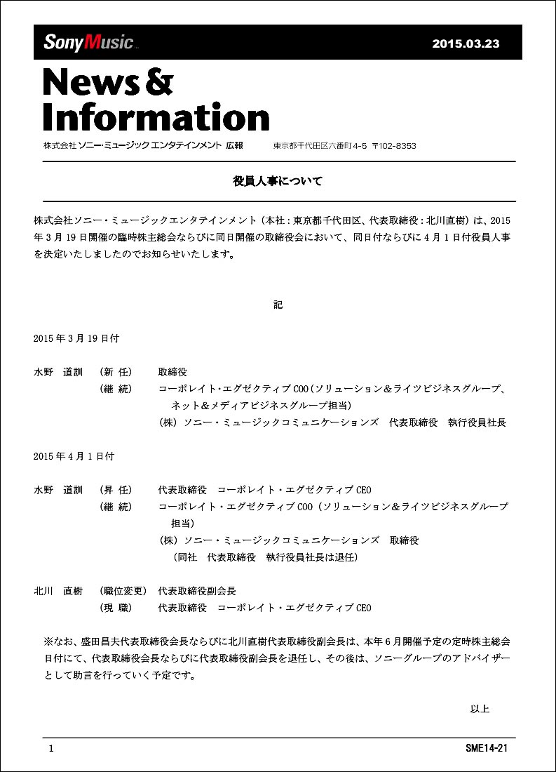 故・盛田昭夫氏の次男、昌夫氏が6月にSME会長職を退く旨の記事が‥‥