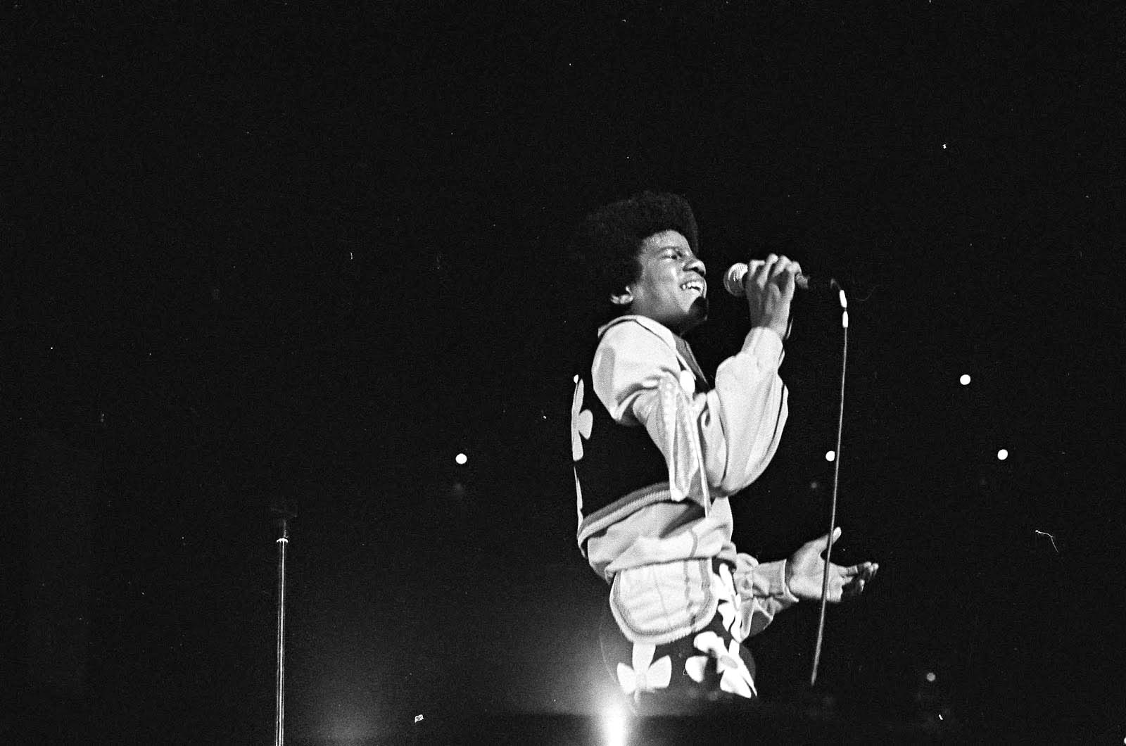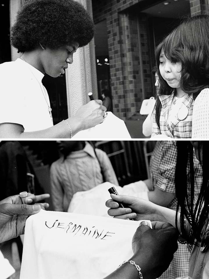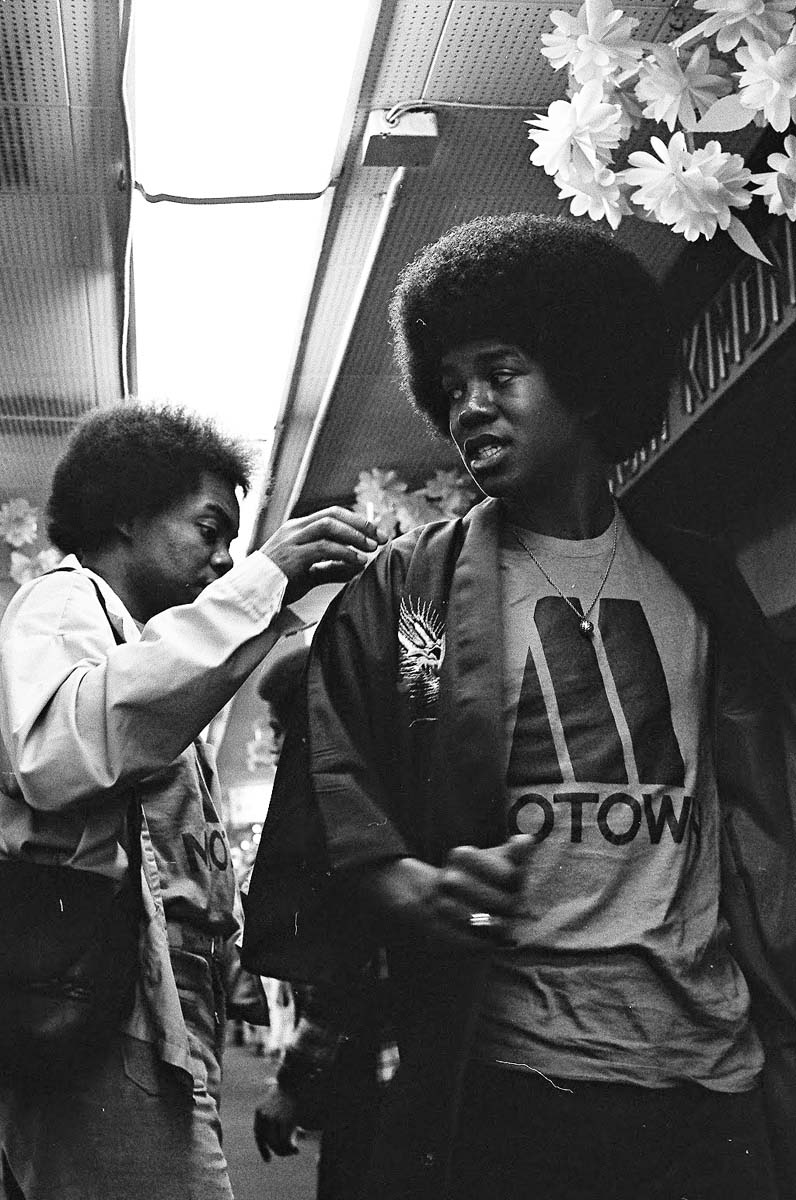 着物を試着するジャーメインと 当時モータウン広報だったボブ・ジョーンズ