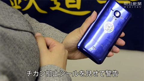 あらかじめスマホ等に貼っておいたシールを、まず警告で示してもダメなら