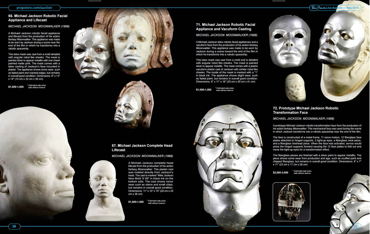 "MOONWALKER" から、マイケルの生身の型や ソレから作ったロボット化の顔型など。