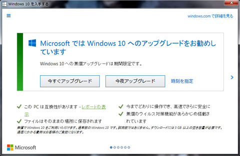 先月から、設定によっては Win10へのアップグレードが自動的に始まってしまう、と