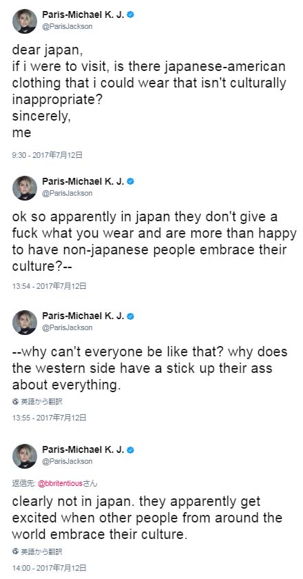 日本の伝統的な服装&芸者風メイクの白人セレブが日本で撮影したグラビアなどに対し、「差別的だ」というコメントが殺到してニュースになる事が多いとのこと。