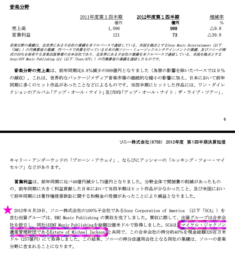 SONYの出資グループはMJエステートと共同でその40%の持ち分を取得。