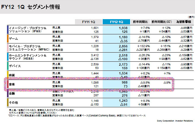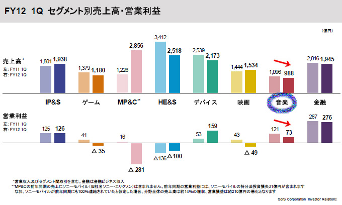 ソニーは8/2付で2012年度第1四半期決算を発表。