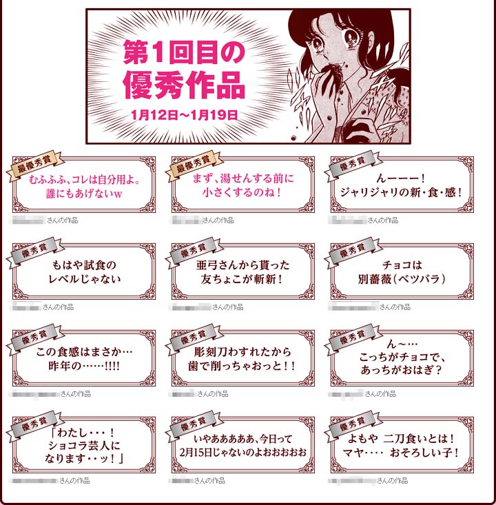 3つめは、ガラスの仮面×高島屋のバレンタインコラボ企画で、1コマのセリフ大喜利で入賞」