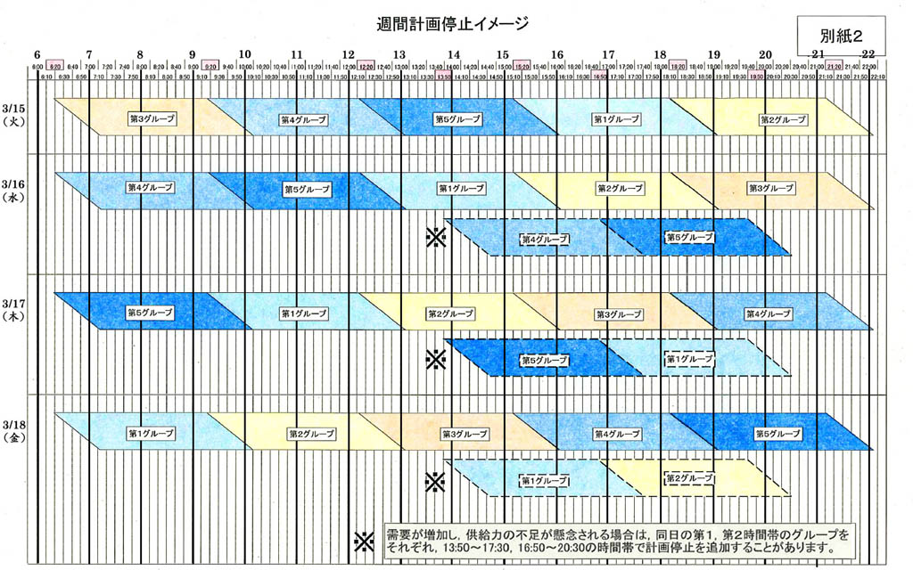 3月15日(火)~ 18日(金) 計画停電予定 <東京電力の資料より>
