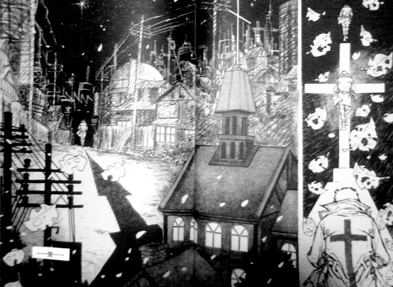 教会の十字架の影を背負いながら立ち去ってゆく… という