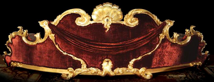 24金とオニキスで装飾された赤のクラッシュト・ベルベット仕上げ,背面はフラワーロープの飾り付き。
