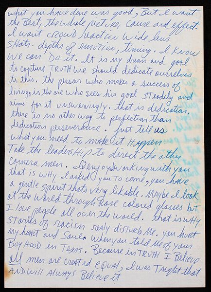 あなたがすることは、私への非常に個人で強力な媒体です。それは、人間の精神で真実、自然発生的な真実、興奮の深さを捕えるために、肉眼が持つことができない瞬間を保存するために、時間を止める技法です。他のすべては忘れられるが、フィルムがあるというわけではありません。